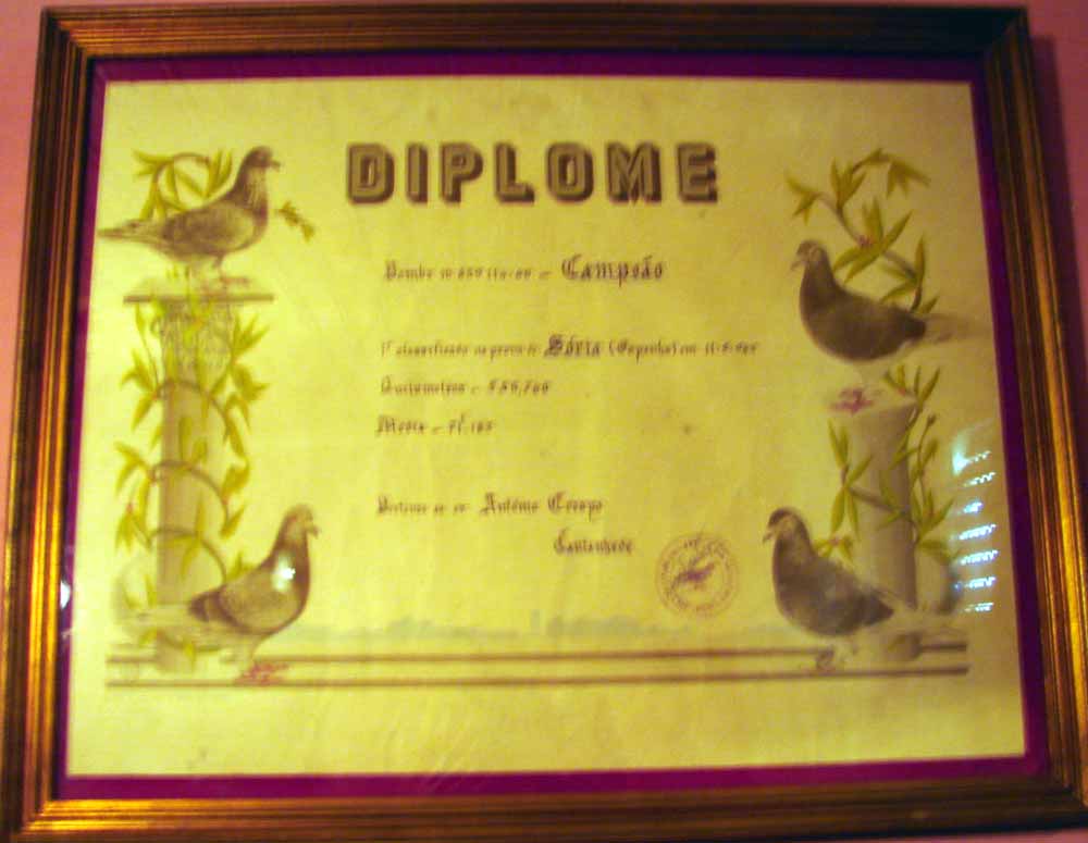 Com dificuldades de localização do seu pombal, devido a estar encaixado entre moradias bem mais altas, ANTÓNIO DIAS teve de recorrer a diversos "truques", para que os seus pombos perdessem o menos tempo possível na entrada no patim aquando a realização das provas e ver assim atenuado o tempo de marcação.