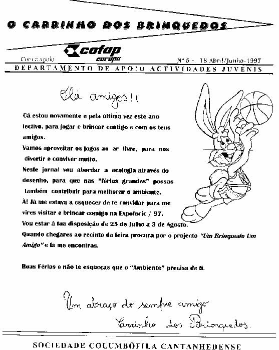 A empresa EDIMPRESA, sedeada em OEIRAS, através das PUBLICAÇÕES ABRIL JOVEM S.A. tem colaborado ao longo da sua existência com a nossa Associação, apoiando algumas iniciativas levadas a cabo pelo DEPARTAMENTO DE APOIO A ACTIVIDADES JUVENIS, nomeadamente os JOGOS INFANTIS DO CONCELHO DE CANTANHEDE.